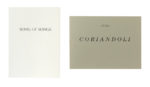 In-folio piccolo (mm 380x280). Con 4 incisioni all'acquatinta di Rita Gallé, di cui una a doppia pagina, tutte firmate a matita dall'Artista e protette da velina. Ottimo esemplare in barbe, a bifoli sciolti. Brossura editoriale con titoli in nero al piatto; entro cofanetto originale con titoli al dorso. Uno dei 100 esemplari in numeri arabi, su una tiratura complessiva di 110 copie. SI AGGIUNGE: Perrone Lorenzo, Coriandoli. Otto acquerelli e un'acquaforte di Rita Gallé. S.l.: Giorgio Upiglio, 1989. Con una bella acquaforte a colori, sciolta, di Rita Gallé, numerata, firmata e datata dall'Artista. (2)