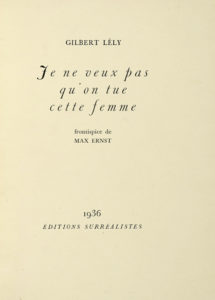 Lé ly Gilbert, Je ne veux pas qu'on tue cette femme. Frontispice de Max Ernst. Paris: Éditions surréalistes, 1936.