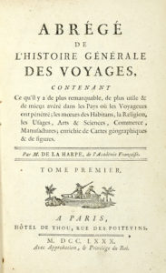 La Harpe Jean Francois, Abrégé de l'histoire générale des voyages [...]. Tome premier (-vingt-troisieme). Paris: Hôtel de Thou, Laporte, 1780-1786.