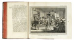 23 volumi (di 33) in-8° (mm 195x120). Ampie gore a rari volumi, altrimenti ottimo esemplare, con numerose belle tavole calcografiche, anche più volte ripiegate, fuori testo. Mancanti l'Atlante e 9 volumi. Legatura coeva in piena pelle, con fregi e titoli in oro su doppio tassello al dorso a 5 nervetti, sguardie marmorizzate e tagli rossi. Qualche difetto e mancanza alle cerniere, alle cuffie e alle punte, ma nel complesso buona conservazione. Collazione disponibile su richiesta. (23)Opera monumentale, contenente le cose più rimarchevoli e più utili di molti paesi del mondo, con i costumi degli abitanti, la religione, le usanze, le arti e le scienze, il commercio, etc., arricchita da numerose tavole. Brunet III, 771: «Les vingt et un premièrs volumes de cette ouvrage, les seul auxquels La Harpe ait travaille [...]. C'est sans doute une histoire agréable à lire...».
