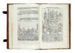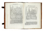 In-folio (mm 283x197). Carte [48] (di 68). Segnatura: a6 (-a6), b4 (-b4), c-d6 (-d6), e-h4 (-e4), i6, k-l4, m6, n4, o6. Testo in carattere gotico su 53 righe. Splendide illustrazioni xilografiche nel testo; marca xilografica al colophon. Spazi per iniziali con letterine guida. Mancanti i fascicoli a6 b4, d6 ed e4, tutti presenti in facsimile fotocopiato. Mancanze marginali reintegrate alla carta c1, c3, f4, k1, k2, l2, n3; con perdite alla carta o2-o5. Uno strappetto al margine inferiore della carta h1, qualche macchia, soprattutto all'ultima carta, e fioriture sparsa. Legatura in mezza pelle con piatti in legno coevo e dorso a 4 nervi e fermagli. Piatti fortemente tarlati e sguardie rinnovate. (1)Prima edizione di questo importante resoconto del pellegrinaggio in Terra Santa da Venezia, passando da Cipro, Damasco, Il Cairo e Alessandria, scritto dal francescano Niccolò da Poggibonsi in seguito al suo movimentato viaggio durato dal 1346 al 1350, durante il quale sopravvisse a naufragi e attacchi dai pirati. È considerata la prima guida di viaggio in lingua volgare, ma questa prima edizione a stampa non includeva il nome di Niccolò, così come nessuna delle edizioni successive. Le xilografie sono solitamente attribuite a Piero Ciza, in quanto il suo nome compare nella cornice del frontespizio, e sono tratte dai manoscritti illustrati rimasti, il più antico dei quali è plausibilmente proprio di Niccolò da Poggibonsi, con i disegni di ciò che vide. L'edizione successiva, stampata a Venezia nel 1518, conteneva ulteriori xilografie, alcune tratte dalla Peregrinatio in terram sanctam di Bernhard von Breydenbach che fu stampata per la prima volta nel 1486. Kathryn Blair Moore, The disappearance of an author and the emergence of a genre: Niccolò da Poggibonsi and pilgrimage guidebooks between manuscript and print, Renaissance Quarterly 66 (2013), 357-411; Sander 4998; BMC VI 850; Goff V267.