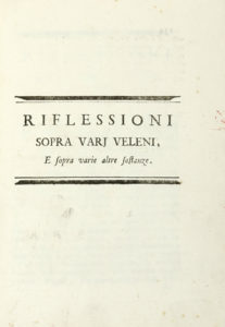 Dalla Decima Angelo, Riflessioni sopra varj veleni, e sopra varie altre sostanze. (Al colophon:) In Venezia: nella stamperia Coleti, 1783.