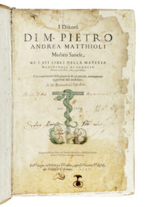 Mattioli Pietro Andrea, I discorsi [...] ne i sei libri della materia medicinale di Pedacio Dioscoride Anazarbeo. Con i veri ritratti delle piante & de gli animali, nuovamente aggiuntovi dal medesimo. In Vinegia: nella bottega d'Erasmo, appresso...