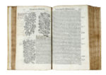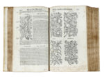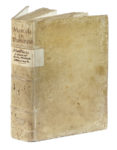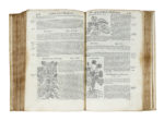 In folio (mm 315x205). Pagine [88], 720, 735-741, 1 bianca. Marca al frontespizio e in fine, e centinaia di bellissime xilografie nel testo. Alcuni legni in coloritura di tarda esecuzione. Copia scompleta di 7 carte (da pagina 721 a 734) e dell'ultima carta in fine, con difetti. Frontespizio controfondato, ricostruiti con carta i margini delle prime 5 carte e della carta A, una evidente gora nel margine inferiore dei fascicoli da A a F e nell'ultimo fascicolo. Alcune carte macchiate e con strappi marginali (talvolta restaurati), fioriture passim. Legatura in piena pergamena rigida con titolo manoscritto al dorso e secondo titolo su pecetta cartacea, sempre applicato al dorso. Copia postillata da mano antica. (1)Una delle prime edizioni in volgare, sconosciuta a Pritzel, Graesse e Brunet. Un vero monumento nella storia degli studi botanici, splendidamente illustrato dalle xilografie disegnate da Giorgio Liberali e incise da Wolfgang Meyerpeck per la prima edizione stampata nel 1554 per lo stesso Valgrisi, che rappresentano l'apice della raffigurazione botanica del tempo e che divennero un modello da copiare per tutti i successivi erbari fino al 1700. Ceresoli, 351.