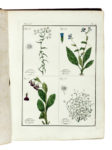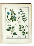 2 parti in 1 volume In-4° (mm 230x180). [6], VIII, 266 con 71 [di 72] tavole numerate 2-72; [4], 278, [2] con 61 tavole fuori testo numerate 1-61. Assente la prima tavola del primo volume, rinforzata la carta del frontespizio, parzialmente staccati i primi fascicoli del volume; nel secondo, frontespizio assente e supplito da una seconda copia del frontespizio della prima parte. Alcune delle tavole, in acquerellatura, presentano sbavature nel colore. Legatura coeva in piena pelle con impressioni a secco ai piatti e titolo in oro al dorso. Legatura parzialmente staccata. Copia fittamente postillata da mano antica. (1)Prima edizione. Interessante trattato botanico contenente le descrizioni, la storia e gli usi medicinali di numerose piante originarie della Francia e non, redatto dal medico e botanico francese Joseph Roques (1772-1850). Di ciascuna delle piante è fornita sia la tassonomia linneiana che la nomenclatura comune. Pritzel 8745.