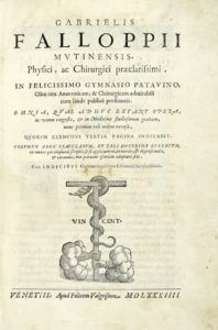 Falloppio Gabriele, Omnia, quae adhuc extant opera, in unum congesta, & in medicinae studiosorum gratiam, nunc primum tali ordine excusa... Venetiis: apud Felicem Valgrisium, 1584.