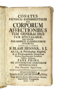 Henner Blasius, Conatus physico-experimentales de corporum affectionibus [...] Pars prima (-secunda). Wirceburgi: Joan. Jacobi Stahel, 1756-61.
