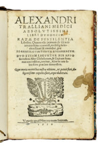 Trallianus Alexander, Libri duodecim. Razae De pestilentia libellus. Venetiis: apud Hieronymum Scotum, 1552.
