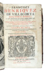 2 volumi in-4° (mm 221x168). Pagine [8], 384; 374 [i.e. 372]. Con 16 tavole calcografiche più volte ripiegate così segnate: Tav I-VII, Tav AA-DD, Tav I dr.-V dr. Omesse nella numerazione le pagine 134-135 del volume II. Frontespizio in rosso e nero al volume I, bella vignetta incisa in rame ad entrambi. Fioriture sparse alle carte, gore d'acqua al volume I. Macchiate le prime 4 carte del fascicolo X del volume I. Legatura in mezza pergamena con punte e piatti in carta decorata. Titoli manoscritti al dorso e tagli spruzzati. SI AGGIUNGE: Henriquez de Villacorta Francisco, ...Doctoris medici, a cubiculo regali Philippi IV et Caroli II archiatri [...] Tomus primus (-secundus). Lugduni: Sumptibus Laurentii Anisson, 1670. 2 tomi in 1 volume in-folio (mm 342x216). Pagine [18], 340, [40]; [12], 490, [26]. Ritratto dell'Autore in rame in antiporta. Entrambi i frontespizi impressi in rosso e nero con vignetta xilografica. Testatine, capilettera e finalini in legno nel testo su due colonne. Esemplare gorato con fioriture intense ad alcune carte. Lavori di tarlo al margine esterno dei primi fascicoli. Legatura in piena pelle con titoli impressi in oro su dorso a 6 nervi. Tagli spruzzati. Copiose mancanze alle cuffie e alle punte, spellature ai piatti. Dedica di mano antica all'occhietto. (3)I OPERA: Prima edizione veneta. Blake 492. Heirs of Hippocrates 759, citando l'edizione francese del 1732: «A native of Denmark, Winslow studied in Holand and France and received his medical degree at Paris. [...]. An expert anatomist, he was among the first to discard physiological details and hypothetical explanations from his writings in order to concentrate solely on descriptive anatomy.»; Wellcome 453 cita la seconda edizione veneta (Bettinelli, 1767).