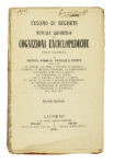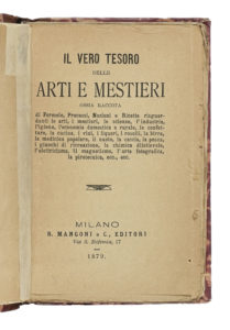 Compongono il lotto: 1) Il vero tesoro delle arti e mestieri ossia raccolta di formule, processi, nozioni e ricette... Milano: R. Mangoni, 1879. In-8° (mm 160x100). 2) Tesoro di segreti. Manuale alfabetico di cognizioni enciclopediche ossia raccolta di ricette, formule, processi e nozioni... Livorno: G. B. Rossi, 1868. In-8° (mm 164x102). 3) Tesoro di segreti. Manuale di cognizioni enciclopediche ossia raccolta di ricette, formule, processi e nozioni... Milano: Francesco Barbini, 1871. In-8° (mm 160x104). 4) Il libro dei segreti. Manuale alfabetico di ricette, metodi, nozioni e consigli... Milano: Emanuelle Rossi, 1862. In-8° (mm 156x100). 5) Il vero tesoro dei segreti della natura ossia manuale enciclopedico... Milano: Pagnoni, 1874. In-8° (mm 190x120). Elenco completo disponibile su richiesta. (8)