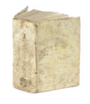 In-8° (mm 172x108). Pagine [80], 1148, [4]. Copiose illustrazioni in legno nel testo, alcune a piena pagina. Ritratto xilografico dell'Autore alla carta a1v. Al frontespizio marca tipografica raffigurante una mano che batte con un martello una roccia dalla quale si sprigionano fiamme; ripetuta, simile, a carta 3C8v. Annotazioni a penna di mano antica al frontespizio e al margine di alcune carte; numerose pagine con testo cassato a penna. Bruniture alle carte, soprattutto in corrispondenza dello specchio di stampa e fioriture sparse. Abrasione causata dall'inchiostro alle carte 2O-2O2. Forellini di tarlo che non ledono il testo alle prime e ultime carte. Legatura in piena pergamena molle con titoli manoscritti e piccola etichetta in carta incollata al dorso. Piatto posteriore lievemente allentato in corrispondenza della cuffia superiore. Timbro di precedente collezione al frontespizio. (1)Vedi Osler 2238, Graesse II, 45 e Wellcome I, 1291 per l'edizione del 1554 e altre. Edizione successiva di quest'opera enciclopedica, la principale di Cardanus (considerato il precursore di Paracelso), apparsa per la prima volta a Norimberga nel 1550.