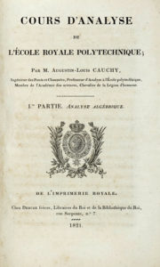 Cauchy Augustin-Louis, Cours d'analyse de l'École royale polytechnique. 1re partie. Paris: de l'Imprimerie Royale, chez Debure frères, 1821.