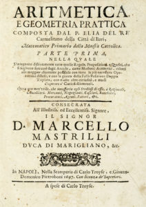 Del Re Elia, Aritmetica, e geometria prattica [...]. Parte prima (-seconda), nella quale s'insegnano distintamente tutte quelle regole, proposizioni, e quesiti, che si sogliono fare cosi dagli antichi... In Napoli: nella stamparia di Carlo Troyse, e...
