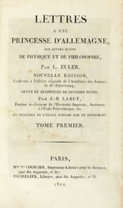 Euler Leonhard, Lettres a une princesse d'Allemagne, sur divers sujets de physique et de philosophie... Tome premier (-second). Paris: Mme Ve Courcier, Bachelier, 1812.