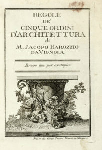 Barozzi (detto il Vignola) Giacomo, Regole de' cinque ordini d'architettura. (Al colophon:) In Milano: si vende da Giuseppe Marelli e Giulio Cesare Bianchi a Paoli 3, 1776.