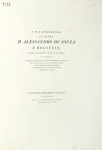 In-4° grande (mm 310x220). Carte [54] con 41 tavole a piena pagina fuori testo in coloritura incise da Francesco Rosaspina. La tavola L'ardire compagno d'Amore presenta una macchia nel margine interno non toccante l'inciso, per il resto copia genuina, in barbe e completa. Legatura coeva in mezzo marocchino rosso con piatti in carta decorata e titoli impressi in oro al dorso. Sguardie in carta blu marmorizzata. Brunitura da esposizione a entrambi i piatti. (1)Brooks, 599: «Libro molto bello, dedicato a D. Alessandro de Souza e Holstein».