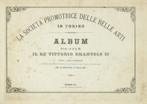 Album in-folio oblungo (mm 310x435). Con 8 incisioni fuori testo: 1 frontespizio inciso da Ferdinando Breme di Sartirana, Cesare della Chiesa di Benevello e I prigionieri di Chillon di Alberto Maso Gilli (Giubbini 2 e 3), La fonte di Ferdinando Breme di Sartirana (Giubbini 8), La pesca di Antonio Fontanesi (Dragone 78), Cervi assaltati dai lupi e Il torrente di Agostino Lauro (Giubbini 1), Foresta di faggi di Barberis. Pagine inquadrate da conici di filetti fitomorfi impresse; tavole in gran parte corredate delle veline protettive. Fioriture diffuse, che coinvolgono anche alcune tavole, altrimenti buona copia. Legatura coeva in mezza tela, con titoli al piatto anteriore e illustrazione a quello posteriore. Macchie, ma nel complesso buona conservazione. (1)Giubbini n. 7: «Nel 1864 la Promotrice di Torino, come compenso straordinario ai soci che avevano contribuito finanziariamente alla costruzione del nuovo edificio per le esposizioni, pubblicò un album speciale (oltre a quello ordinario) contenente otto incisioni originali e una introduzione di Giovanni Vico [...]. L'album speciale, in effetti, rappresenta il primo riconoscimento ufficiale, in Italia, della dignità e dell'autonomia di opera d'arte dell'acquaforte».
