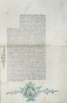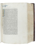 Folio massimo (mm 400x280). Carte [416] (di 421). Segnatura: [a-b12, c-l10, m10+1, n-p10, q-r8, s-z & aa-gg10 (- cc3-cc6), hh-kk10 (- hh1), ll-mm8, nn-rr10, ss14]. Testo in caratteri romani su 49 linee. Esemplare ad ampi margini, profusamente postillato. Iniziale dorata con decoro a tralcio di vite bianca su sfondo rosa, azzurro e verde all'inizio della Terza Decade (carta numerata 172 a matita). Annotazioni in inchiostro rosso e marrone; numerazione manoscritta a inchiostro rosso e successivamente a matita. Mancanti le carte [cc3-cc6] (numerate a matita 284-287) e la carta hh1 (numerata 312), tutte e 5 sostituite da una riproduzione facsimilare su carta antica. Gravi difetti e mancanze alla carta [c1], parzialmente sostituita in facsimile (i frammenti dell'originale sono sciolti nel volume) e con la parte inferiore lavata e con integrazione marginale. Mancanze marginali con integrazione, senza perdite, ad alcune carte, e con perdita alla carta numerata 152 a matita e 131 a inchiostro. Macchie, fioriture sparse e ampie gore, concentrate principalmente nell'ultima parte del volume; forellini di tarlo nel testo, con importanti perdite di inciso alle carte numerate a matita 259-283, 288-311, 313-421. Legatura coeva con piatti su assi di legno rivestiti in pelle, con dorso modernamente ricostruito e fermagli ai piatti con cinghie rinnovate e sguardie in pergamena. Decoro a tralci di vite bianca, in calce alla carta [c1r], contenente una corona d'alloro con lo stemma della famiglia Guicciardini di Firenze. (1)Splendido esemplare di antica provenienza fiorentina, di una delle due edizioni stampate nel 1470 (l'altra prodotta a Roma da Ulrich Han e curata da Giannantonio Campano), tratta dall'editio princeps del 1469 (curata da Giovanni Andrea Bussi e stampata da Sweynheym e Pannartz a Roma) e contenente la prima, la terza e la quarta decade della monumentale storia di Livio, riunita da Petrarca. Si tratta, inoltre, di uno dei primi libri stampati a Venezia da Vindelinus, che continuò l'attività tipografica del fratello Johannes, primo stampatore a Venezia, dopo la morte prematura di quest'ultimo alla fine del 1469. Goff L238; IGI 5771; BMC V 154.