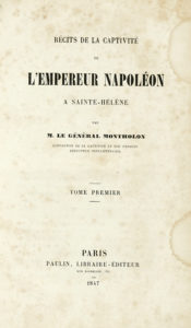 Montholon Charles Tristan (de), Récits de la captivité de l'Empereur Napoléon a Sainte-Hélène [...]. Tome premier (-second). Paris: Paulin, 1847.