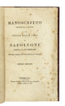 2 volumi in-8° (mm 210x127). Fioriture diffuse e qualche gora marginale, altrimenti buona copia. Legatura coeva in mezza pelle con piatti marmorizzati e titoli in oro al dorso; sguardie decorate. Abrasioni e lievi mancanze a piatti e dorso. SI AGGIUNGE: Manoscritto venuto da S. Elena o sia storia della vita di Napoleone scritt da lui medesimo. Versione italiana col testo francese di riscontro. Seconda edizione. Napoli: Agnello Nobile, 1820. SI AGGIUNGE: Lowe Hudson, Histoire de la captivité de Napoléon à Sainte-Hélène d'après les documents officiels, inédits et les manuscrits [...] Tome premier (-quatrième). Paris: Librairie d'Amyot, s.d. [i.e. 1853].
