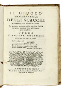 Ponziani Domenico Lorenzo, Il giuoco incomparabile degli scacchi sviluppato con nuovo metodo... In Modena: per gli eredi di Bartolomeo Soliani, 1769.