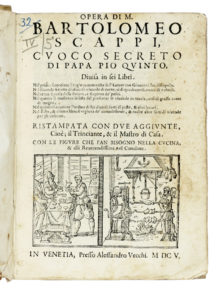 Scappi Bartolomeo, Opera [...] divisa in sei libri. Il trinciante. In Venetia: presso Alessandro Vecchi, 1605.