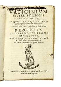 Septimius Severus, Vaticinium Severi, et Leonis imperatorum, in quo videtur finis Turcarum in praesenti eorum imperatore, una cum alijs nonnullis in hac re vaticinijs. In Brescia: appresso Pietro Maria Marchetti, 1596.