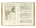 In-8° (mm 135x95). Pagine 106, [6] bianche. Con marca tipografica impressa in legno al frontespizio e 16 illustrazioni a piena pagina nel testo. Ottima copia, con le tavole ben conservate. Legatura coeva in piena pergamena floscia con titolo manoscritto al dorso. Nota di possesso cassata sul frontespizio. (1)Prima edizione di questo raro volume di profezie di Settimo Severo e di Leone il Saggio. Caillet III, 11042: «petit ouvrage contenant les prophéties sur les empereurs Sévère et Léone, ainsi qui sur la fin des Turcs et de leur empire - orné de 16 curieuses figures sur cuivre»; Mortimer 254; Göllner 2255.