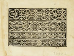 In4° piccolo oblungo (mm 135x185). Contiene 24 tavole incise in legno con riproduzioni di ricami e merletti. In aggiunta, 7 veline con disegni di ricami del XX secolo. Conservati entro legatura in mezza pelle con piatti in pergamena. Carte sciolte. Alcuni dei fogli presentano difetti conservativi. Si vende come raccolta di tavole, lotto non passibile di restituzione. (1)Tavole provenienti dalla nota opera di Cesare Vecellio dedicata ai modelli per pizzi e merletti, fortunatissima e più volte ristampata.