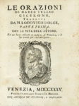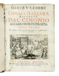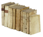 Compongono il lotto: 1) Cicero Marcus Tullius, Le orazioni [...] tradotte da M. Lodovico Dolce. Parte prima (-terza). Venezia; presso Francesco Storti, 1735. 3 volumi. 2) Tibullus Albius, Quae exstant, ad fidem veterum membranarum fedulo castigata... Notae, cum variar. Lectionum libello... Amstelaedami: ex officina Wetsteniana, 1708. 3) [Mambelli Marco Antonio], Osservazioni della lingua italiana... Tomo primo (-secondo). In Verona; per Pierantonio Berno, 1722. 2 volumi. 4) Ravisius Textor Joannes, Epithetorum Opus absolutissimum, ex recognitione ipsiusmet Autoris. Venetiis: apud Milochum, 1654. 5) Seneca, Volgarizzamento delle pistole [...] e del trattato della provvidenza di Dio. In Firenze: per Gio. Gaetano Tartini e Santi Franchi, 1717. 6) Cornelius Nepos, Quae exstant omnia... Patavii excudebat Josephus Cominus, 2721. 7) Salvini Antonio Maria, Prose toscane. In Firenze: nella Stamp. di S.A.R. per i Guiducci e Franchi, 1715. (10)