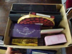Mannette 105 contenant : 24 ouvrages sur la gastronomie dont plaquettes et vieux papiers, Bocuse, La Coupole et Macarons. Voir photo.