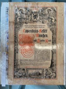 ANONYME. Menu d'un jour de fête en Allemagne, carte avec les prix. Munich, Löwenbräu-Keller, …
