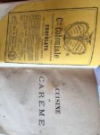 BARON BRISSE. Obédience aux commandements de l'église. Cuisine en carême. Paris, E. Donnaud, 1890 ; in-12, 72 + 44 pp., reliure pleine toile havane, dos lisse, pièce de titre en cuir noir et couverture conservée.