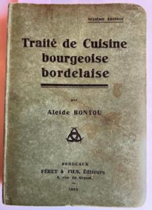 BONTOU (Aleide) - Traité de cuisine bourgeoise bordelaise. Bordeaux, Féret & Fils, 1929 ; in-8, 444 pp. + publicités, cartonnage papier imprimé d'éditeur.