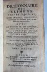 [BRIAND (M.C.D. Chef De Cuisine De M. L Prince De ***)]. Dictionnaire des alimens, vins et liqueurs, leurs qualités, leurs effets relativement aux différents âges et aux différents tempéraments ; avec la manière de les apprêter, ancienne et moderne, suivant la méthode des plus habiles Chefs d'Office et Chefs de Cuisine de la Cour et de le ville. Ouvrage très utile dans toutes les familles Tome second. Paris, Gissey & Bordelet, 1750 ; in-12, 576 pp., reliure plein veau marbré, dos orné de pavots à 5 nerfs, pièces de titre et de tomaison en maroquin rouge, tranches dorées.