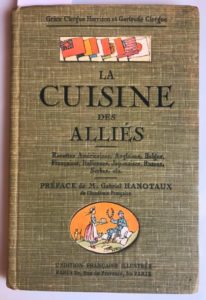 CLERGUE HARRISON & CLERGUE (Grace & Gertrude) - La cuisine des alliés. Paris, Édition Française Illustrée, 1918 ; in-12, 128 pp., cartonnage d'éditeur. Préface de Gabriel Hanotaux.
