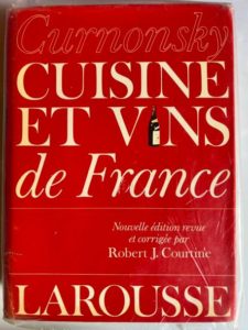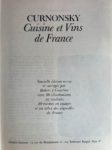 CURNONSKY. Cuisine et vins de France. Nouvelle édition revue et corrigée par Robert J. Courtine. Paris, Larousse, 1974 ; in-4, 670 pp., reliure pleine toile d'éditeur avec jaquette. 90 illustrations en couleurs, 80 recettes en images et un atlas des vignobles de la France.