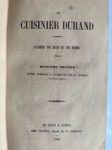 DURAND (C.) - Le cuisinier Durand. Cuisine du midi et du nord. Nîmes, Chez l'auteur, 1865 ; in-8, XVI-320 pp., reliure demi-veau, dos à 4nerfs. Le texte s'arrête brutalement à la page 320.