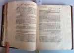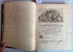 GILLIERS (Joseph) - Le Cannameliste français ou nouvelle instruction pour ceux qui désirent d'apprendre l'office rédigé en forme de dictionnaire comprenant les noms, les descriptions, les usages, les choix & les principes de tout ce qui se pratique dans l'office, l'explication de tous les termes dont on se sert ; avec la manière de dessiner, & de former toutes sortes de contours de tables & de dormants. Nancy, Chez Jean-Baptiste-Hyacinthe Leclerc et Merlin, 1768 ; in-4, VI-238 pp. + 12 pages de planche, reliure moderne plein veau brun, dos orné à 5 nerfs. Vicaire 405 - Simon 759 - Bitting 185 - Cagle 215 - Oberlé 122. Par le sieur Gilliers, chef d'office, & distillateur de sa majesté le roi de Pologne, duc de Lorraine et de Bar. Un des plus fameux traités de cuisine du XVIIIe siècle. L'ouvrage est dédié au duc de Tenczin-Ossolinski, premier grand officier de la Maison du roi de Pologne. C'est un manuel de cuisine des desserts sous forme de dictionnaire (d'où une grande table des matières) et avec de nombreuses recettes de confitures, pâtes, biscuits, bonbons et nougats, autant de friandises pour lesquelles Gilliers avait mis à contribution ses confrères de Nancy, Cécile, Travers et Touchard. L'ouvrage présente également un grand intérêt parce qu'il explique comment dresser une table et de bien présenter les mets autant que la manière de bien cuisiner. Le terme de Cannaméliste provient à la fois de canne à sucre et de miel, on peut donc en déduire que le cannaméliste est celui qui manipule ces deux matières. Cette édition est l'édition originale, la plus complète (une seconde édition est publiée en 1768), elle possède un frontispice et 13 planches dépliantes de modèles de vaisselle, verres, gobelets, surtouts de table, cafetières, pièces montées et coupes variées. Ces planches dessinées par Dupuis ont été gravées par Lotha (quelques légères déchirures et salissures d'usage, ainsi que quelques rousseurs éparses) - Exemplaire à grandes marges. Seconde édition, la planche 11 n'est pas ancienne, c'est une copie insérée dans l'ouvrage.