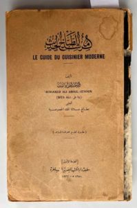 [LIVRE EN ARABE] - ABOUL-SENOUN (Mohamed Ali) - Le guide du cuisinier moderne. S.l., s.e., vers 1930 ; in-8, environ 300 pp., cartonnage imprimé d'éditeur. Ouvrage en arabe.