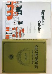[LOT DE 2 LIVRES EN ANGLAIS]. BITTING (Katherine) - Gastronomic bibliography. Londres, Holland Press, 1981, in-4, reliure d'éditeur avec jaquette, état neuf. Un des 500 exemplaires numérotés à la main. KHALIL (Nagwa E.) - Egyptian cuisine. Washington, Worldwide Graphics, 1980, in-4, reliure d'éditeur avec jaquette, état neuf.
