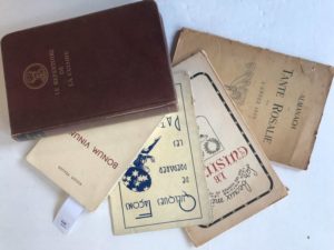 [LOT DE 5 LIVRES DE GASTRONOMIE]. PEAGER (Roger) - Bonum Vinum… Pensée Nouvelle, 1949, broché, envoi de l'auteur, édition originale, numéroté sur Alfa. Anonyme - Almanach de tante Rosalie pour l'année 1903. Broché, imprimerie Lorraine Metz. SAULNIER - Le répertoire de la cuisine. Édition de luxe en anglais, cartonnage d'éditeur. PELLAPRAT - Les beaux métiers. Le cuisinier. Berger Levrault, 1942, broché. BOUILLARD - Quelques façons de préparer les pâtes. Wygmael, 1929, broché. Les 5 volumes.
