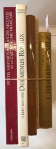 [LOT DE 5 LIVRES DE GASTRONOMIE]. FAWZEYA et RIZQALLAH - La préparation du pain dans un vllage du delta Égyptien (province de Charqia) - Caire, Institut français, 1978, broché. CASTELOT - L'histoire à table. Plon-Perrin, 1972, reliure d'éditeur avec jaquette. POINT (Fernand) - Ma gastronomie. Flammarion, 1967, reliure toilée d'éditeur. MORDACQ - Il était une fois des menus royaux. ID3, vers 1990, reliure d'éditeur avec jaquette. BIRLOUEZ - DREYFUS - Petites histoires & grandes recettes de la gastronomie française. L'Imprévu, 2016, cartonnage d'éditeur.
