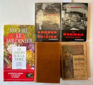 [LOT DE 5 LIVRES DE GASTRONOMIE]. MICHEL LE JARDINIER - Le jardin sur la table. Actes Sud, 1987, broché. LA VARENNE - Le vray cuisinier François… Réimpression de 1976. GUYOT - La pâtissière des petits ménages. Guyot, vers 1890, broché. DAGOURET - Abrégé de cuisine. Flammarion, 1948, cartonnage d'éditeur. DAGOURET - Le barman universel. Flammarion, 1948, cartonnage d'éditeur.