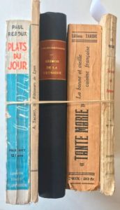 [LOT DE 5 LIVRES DE GASTRONOMIE]. SACHET - Les rôtisseurs de Lyon, Cumin et Masson, 1920, broché. DESNOIRESTERRES (Gustave) - Grimod de la Reynière et son groupe. Didier, 1877, reliure pleine toile. TANTE MARIE - La véritable cuisine de Famille. Taride, vers 1920, broché. VICCART - Savoir en amour… Le régime amoureux des deux sexes. Fort, 1927, broché. REBOUX - Plats du jour. Flammarion, 1936, broché, envoi de l'auteur.