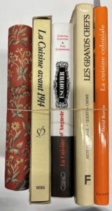 [LOT DE 5 LIVRES DE GASTRONOMIE]. COLLECTIF - Le ménagier de Paris. Crédit Lyonnais, 1961, broché, emboitage. COLLECTIF - Le livre d'or de la bonne cuisine françoise. Avant 1914. Sers, 1984, reliure pleine toile d'éditeur. CONSTANT & CAMDEBORDE - La cuisine d'Auguste Escoffier. Lafon, 2016, envoi de l'auteur, cartonnage d'éditeur. COLLECTIF - Les grands chefs. Éditions du Fanal, 1979, reliure pleine toile d'éditeur avec jaquette. BURTON - La cuisine coloniale. Hachette, 2002, cartonnage d'éditeur avec jaquette. Les 5 volumes.