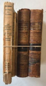 [LOT DE 5 LIVRES DE GASTRONOMIE]. COUDREY - Un quarteron de rimes culinaires et recettes morvandelles de la Mélie de Château-Chinon. Nevers, Chassaing, vers 1940, exemplaire numéroté avec des bois de Sayet, broché. LARMAND (Léon) - Les poètes de la ripaille. Michaud, vers 1930, broché. BIOT - Recettes de confitures. Bernardin-Béchet, vers 1900, broché. DUPUIS - Les tartelettes de Jeannie. Delagrave, 1936, broché. AMÉRO - Les classiques de la table. Firmin Didot, 1855, 2 volumes reliés (reliures à restaurer) -