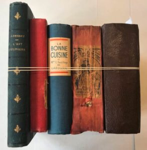 [LOT DE 5 LIVRES DE GASTRONOMIE]. SUZANNE (Alfred) - 300 manières d'accommoder les poissons. Charles, 1899, cartonnage d'éditeur. SAINT-ANGE - La bonne cuisine de madame E. Saint-Ange, Larousse, 1929, cartonnage d'éditeur. KAMMENTHALER - La cuisine de Jeanneton. Albin Michel, 1905, cartonnage d'éditeur. TANTE MARIE - La véritable cuisine de famille. Taride, vers 1900, cartonnage d'éditeur, dos restaurer. BESSET - L'art culinaire. Les 10 premières pages manquantes. Les 5 volumes.