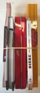[LOT DE 5 LIVRES DE GASTRONOMIE EN CARTONNAGES AMUSANTS]. BULTEAU - 30 recettes gourmandes sucrées et salées. Solar, 2010, cartonnage en forme de bouteille de Coca-cola. ANONYME - Les 30 meilleurs recettes Nutella, Larousse, 2011, cartonnage en forme d'un pot de Nutella. NICOLAS - ROUQUETTE - SIREIX - Soupes. Hachette, 2010, dans une boite en métal un livret des magnettes de recettes de cuisine à coller sur un frigo. LIZAMBARD - Bière, 30 recettes gourmande sucrées et salées. Solar, 2012, cartonnage en forme d'une chope de bière. BARDI- Spaghettis. Larousse, 2009, cartonnage en forme d'un paquet de spaghettis. Amusantes reliures. Les maquettistes ne sont pas forcément indiqués mais on peut que les saluer bas.