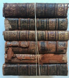 [LOT DE 6 OUVRAGES 18ème SUR LA GASTRONOMIE]. LÉMERY - Traité des alimens, volume 1. ANONYME - Le cuisinier royal et bourgeois, volume 2. ANONYME - Les dons de Comus, volume 2. ANONYME - Les soupers de la cour, ou l'art de travailler toutes sortes d'alimens, volume 1. ANONYME - La cuisinière bourgeoise, suivie de l'office. Chez André, an VI de la RépubliqueM. C. D. - Dictionnaire des alimens, vins et liqueurs, volume 1. Les 6 volumes.